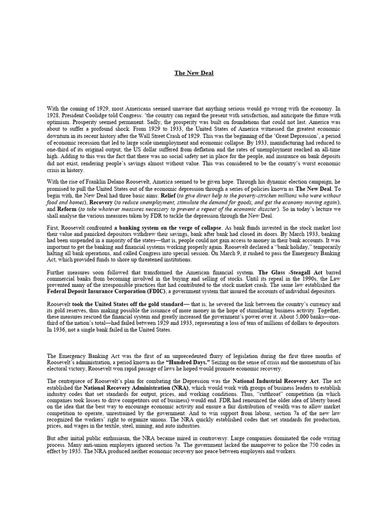 begin with, the New Deal had three basic aims: Relief (to give direct help to the poverty-stricken millions who were without