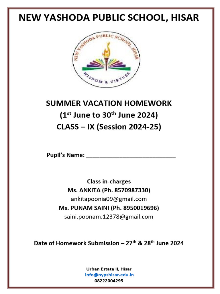 SUMMER VACATION HOMEWORK – CLASS- IX