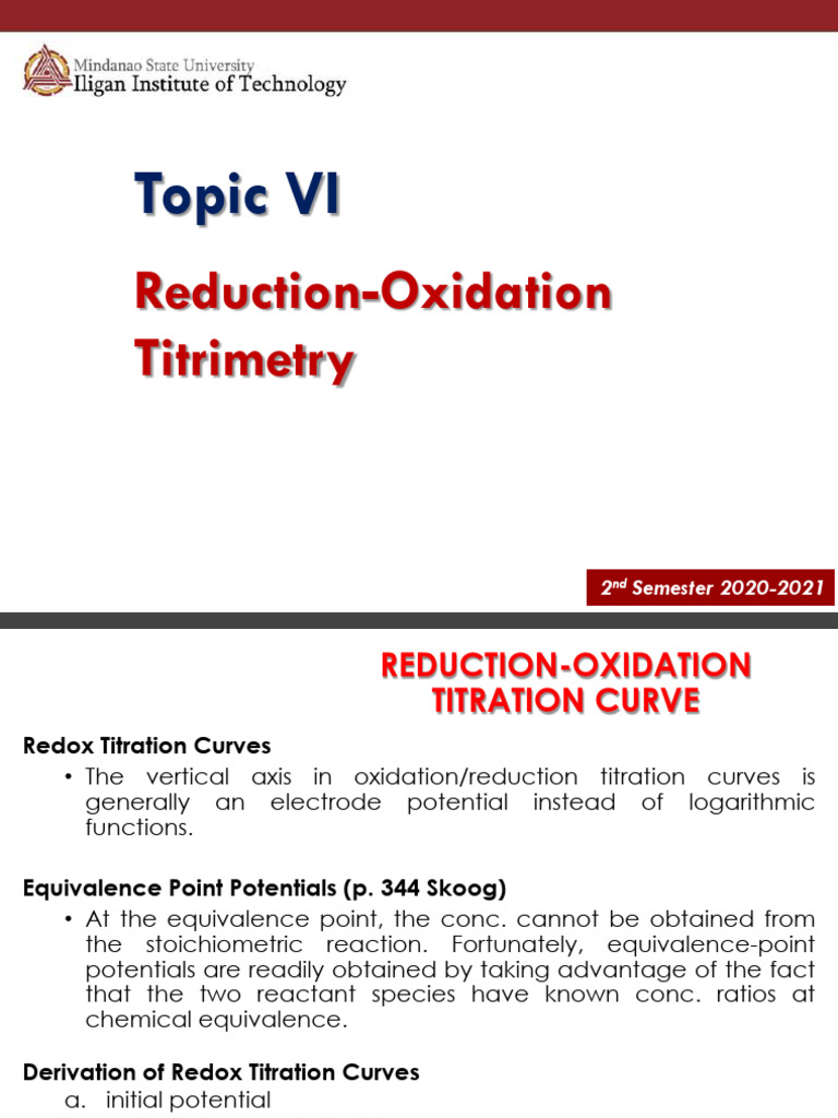 Derivation of Redox Titration Curves