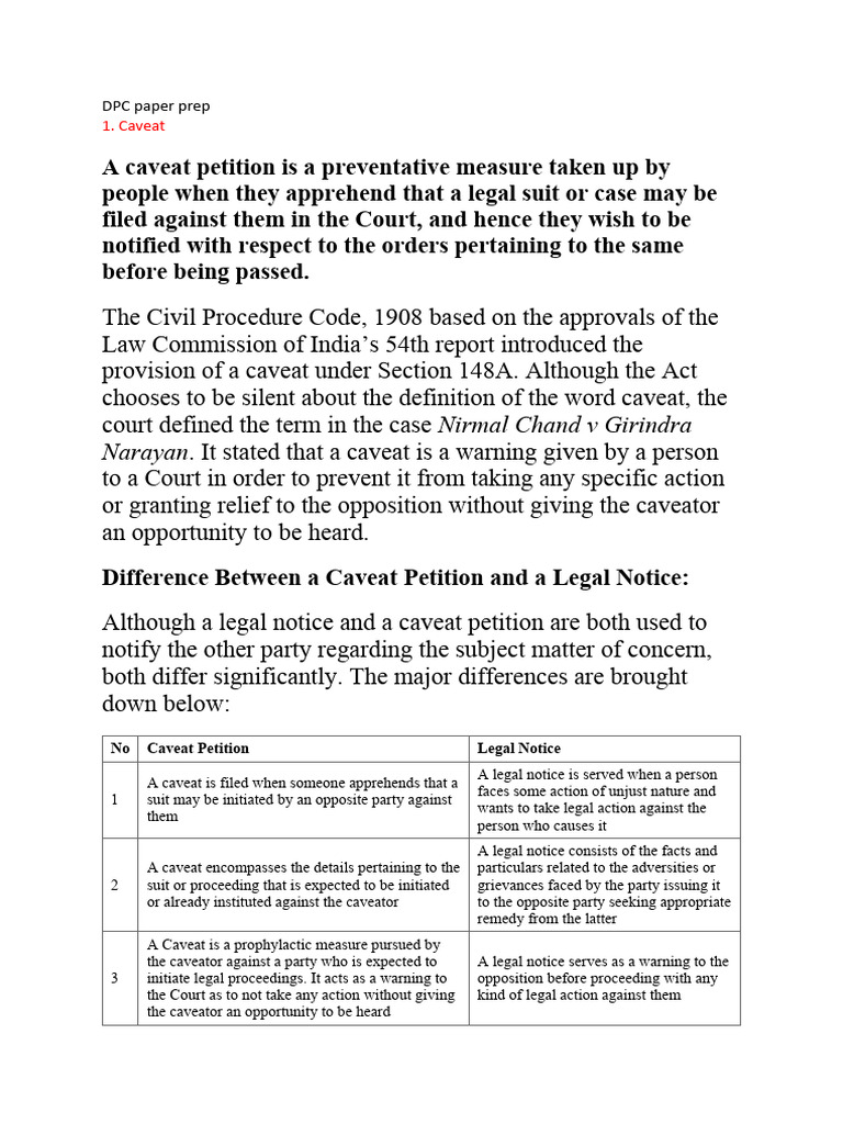Difference Between a Caveat Petition and a Legal Notice:
