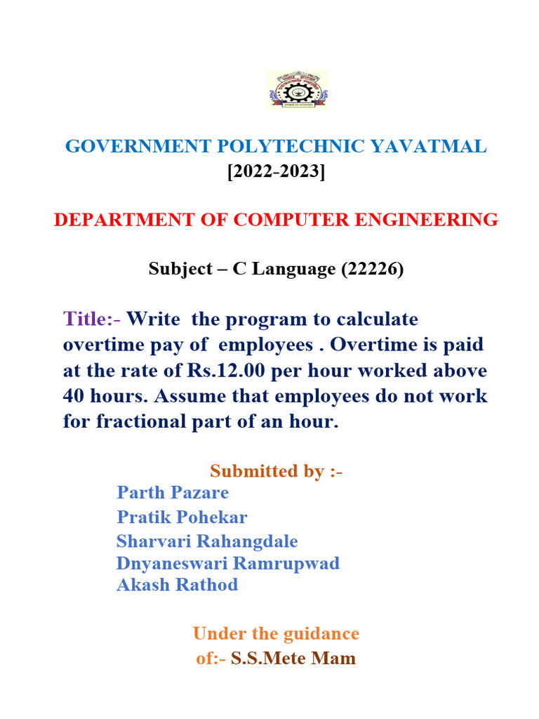 institute Government Polytechnic Yavatmal. The work done by us is our own