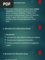 - A discursive essay presents various perspectives on the topic, including opposing views.