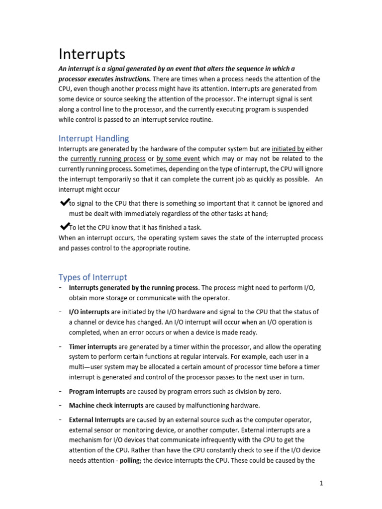 CPU, even though another process might have its attention. Interrupts are generated from