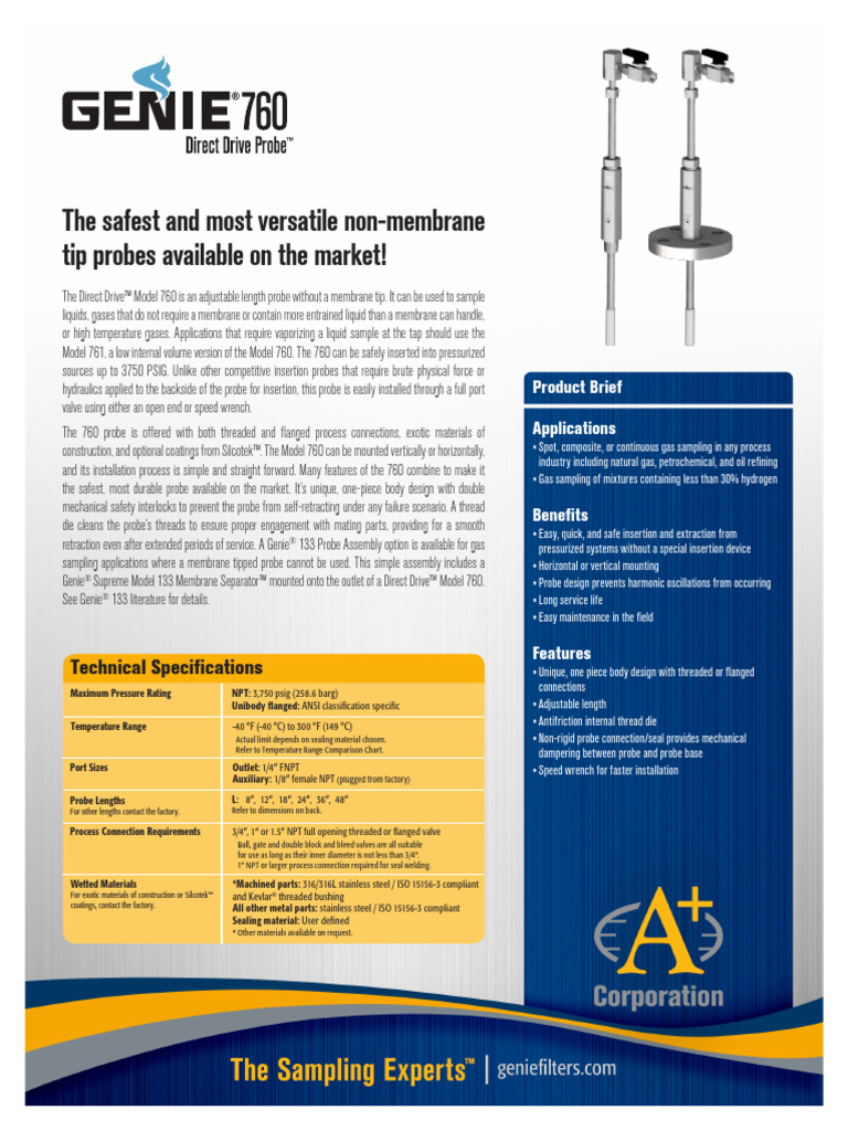 The Direct Drive™ Model 760 is an adjustable length probe without a membrane tip. It can be used to sample