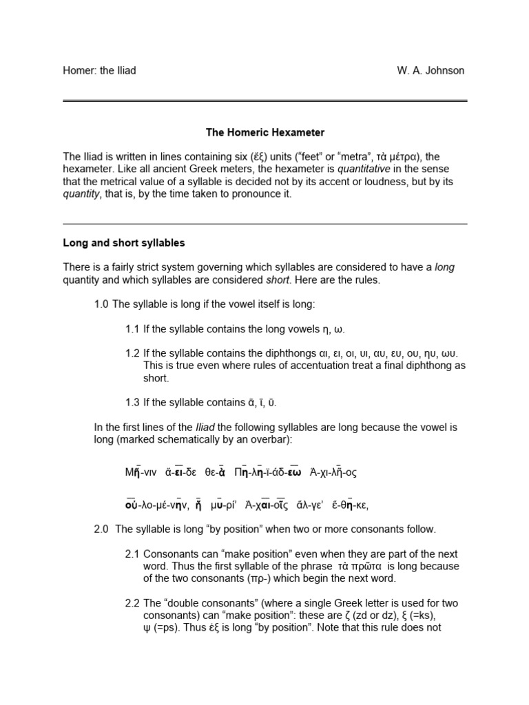 diphthong). Thus in the first line of the Iliad -εω of Πηληιάδεω must be