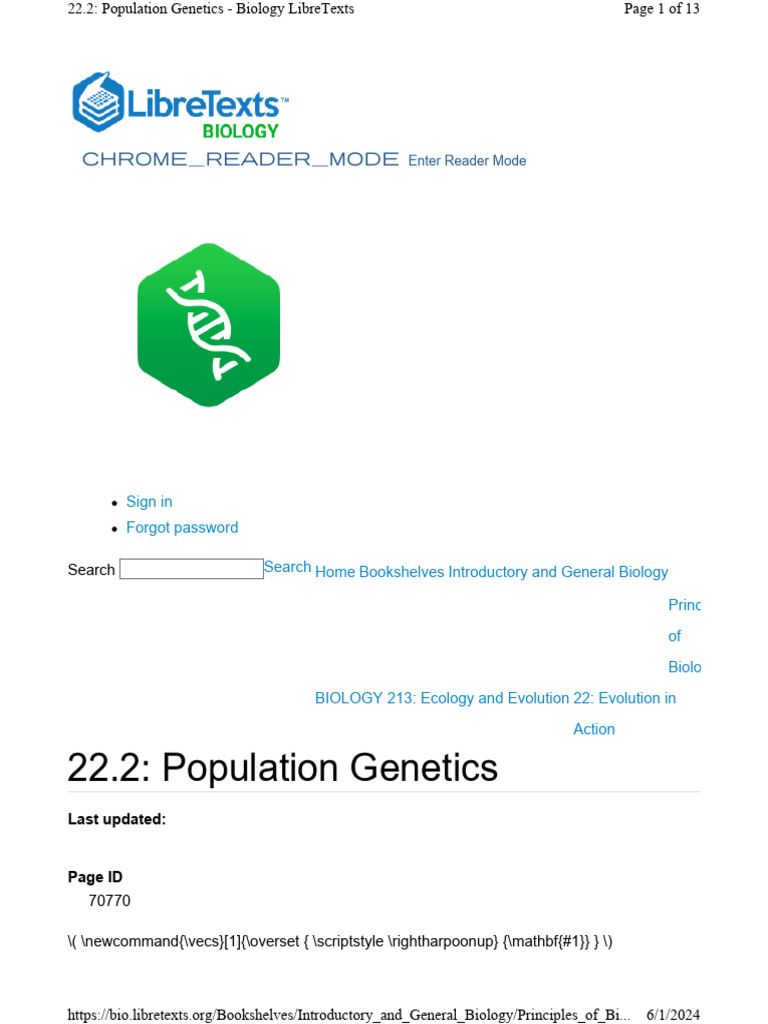 2: Population Genetics - Biology LibreTexts Page 1 of 13