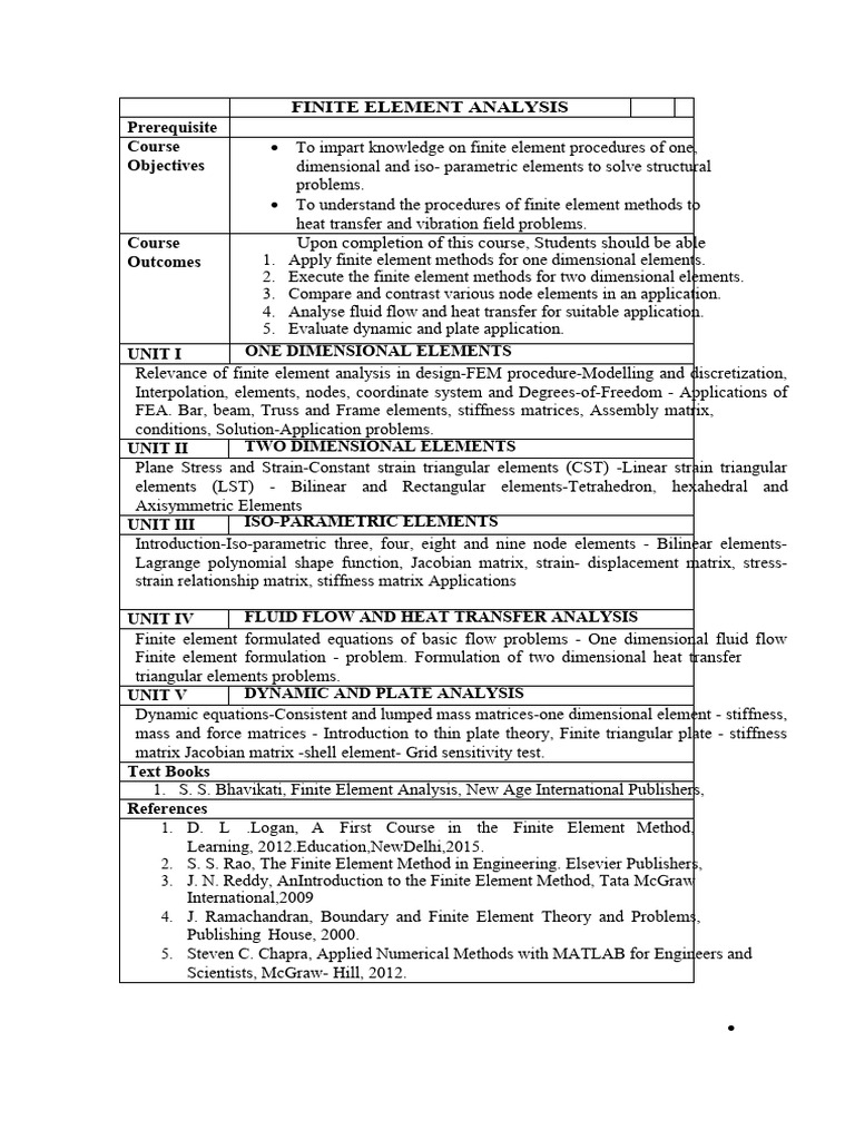 Course To impart knowledge on finite element procedures of one,