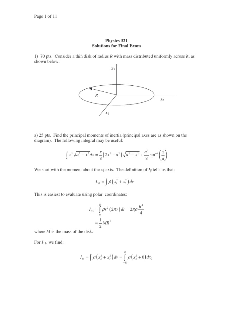 1) 70 pts. Consider a thin disk of radius R with mass distributed uniformly across it, as