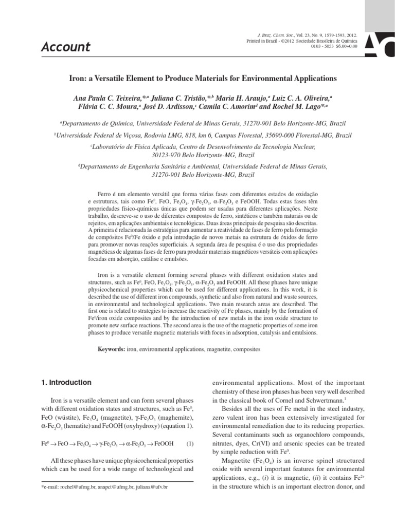 1592 Iron: a Versatile Element to Produce Materials for Environmental Applications J. Braz. Chem. Soc.