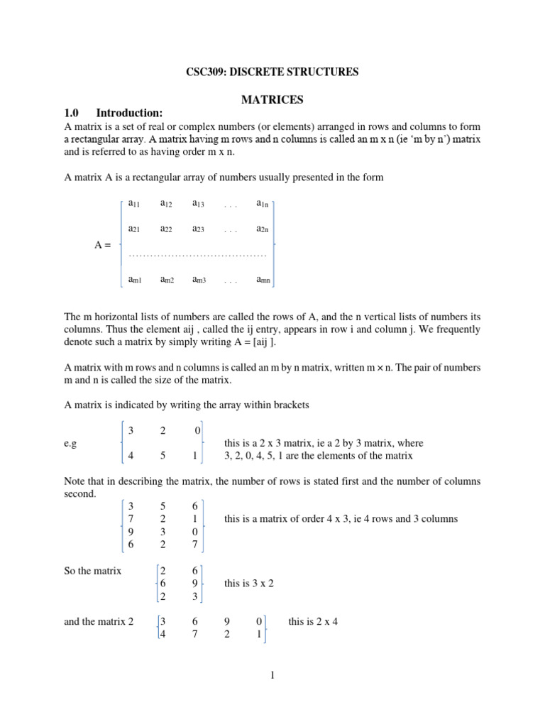 A matrix is a set of real or complex numbers (or elements) arranged in rows and columns to form