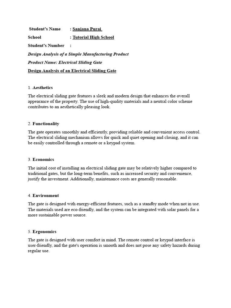 Design Analysis of an Electrical Sliding Gate