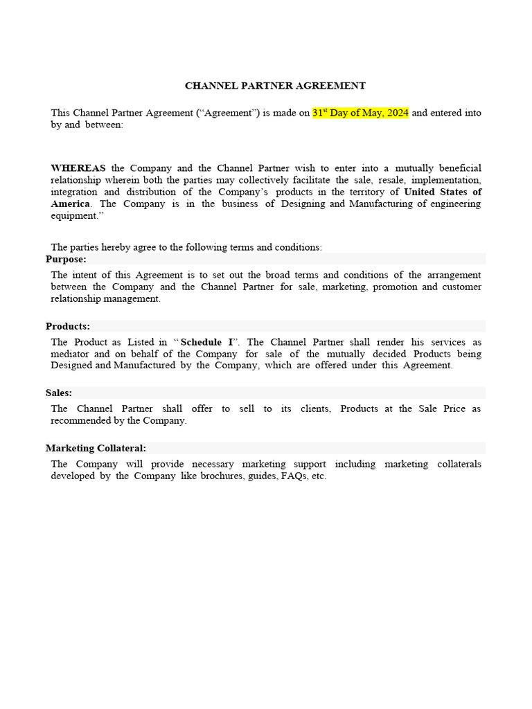 This Channel Partner Agreement (“Agreement”) is made on 31st Day of May, 2024 and entered into