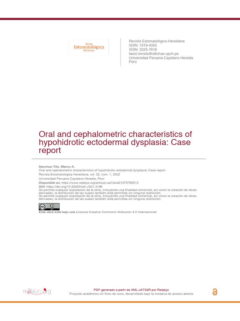 Marco A. Sánchez-Tito. Oral and cephalometric characteristics of hypohidrotic ectodermal dysplasia: Case report