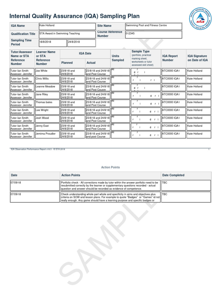 Learner Name Joe White Qualification Title STA Award in Swimming Teaching
