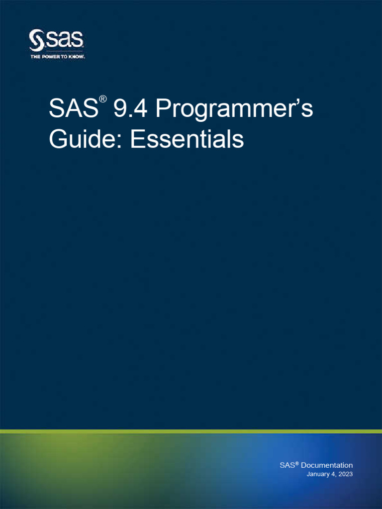 The correct bibliographic citation for this manual is as follows: SAS Institute Inc. 2019. SAS® 9.4 Programmer’s Guide: Essentials. Cary, NC: