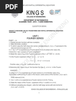 6. If f(x)=2x in the interval (0,4) then find the value of a2 in the fourier series expansion. 7. Find the sine series for the function f(x)=1; 0<x<. 8. If f(x) is discontinuous at x=a,What does its fourier series represents at that point. <x < . 9. Determine the value of an in the fourier series expansion of f(x)=x3 in b 10. If f(x)=sinhx is defined in -<x< , write the value of a0 an. PART-B 1. If f(x)= (-x) find the fierier series of period 2 in the interval (0,2),Hence deduce that 1- - + - + = . 2. If + + +.. . 3. Find the fourier series of f(x)=xsinx in 4. Obtain cosine series for f(x)=x sinx in 0 . 5. Find the half range cosine series for the function f(x)=x in + + + = . . , find a Fourier series of periodicity and 2 and hence evaluate