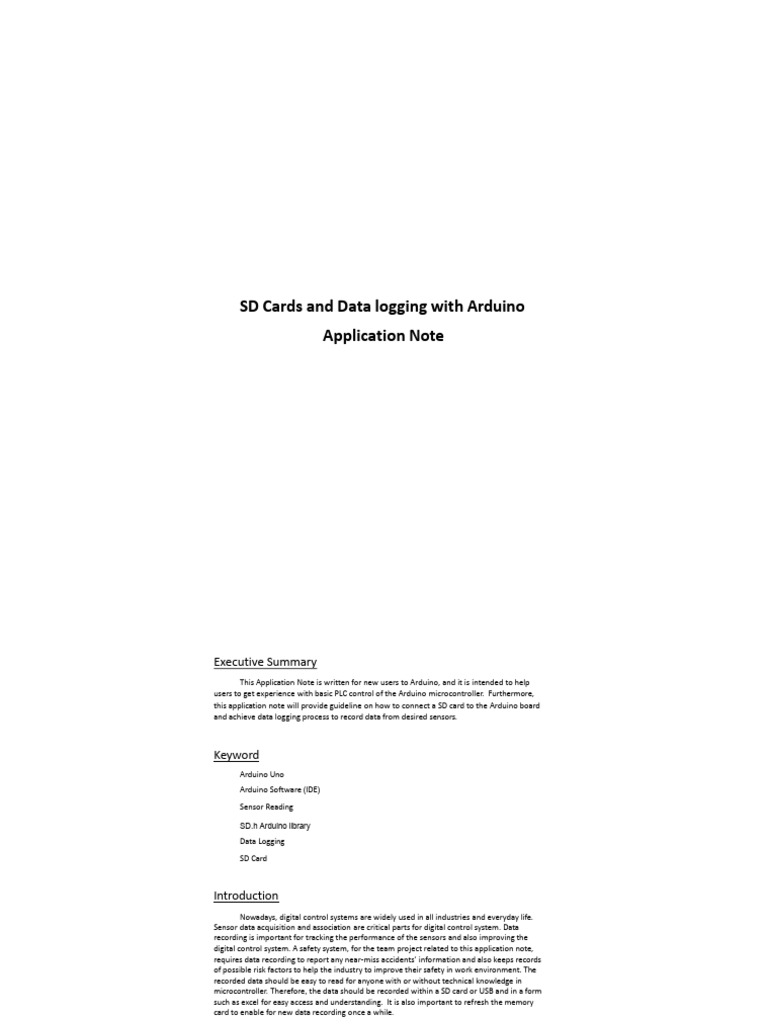 this application note will provide guideline on how to connect a SD card to the Arduino board