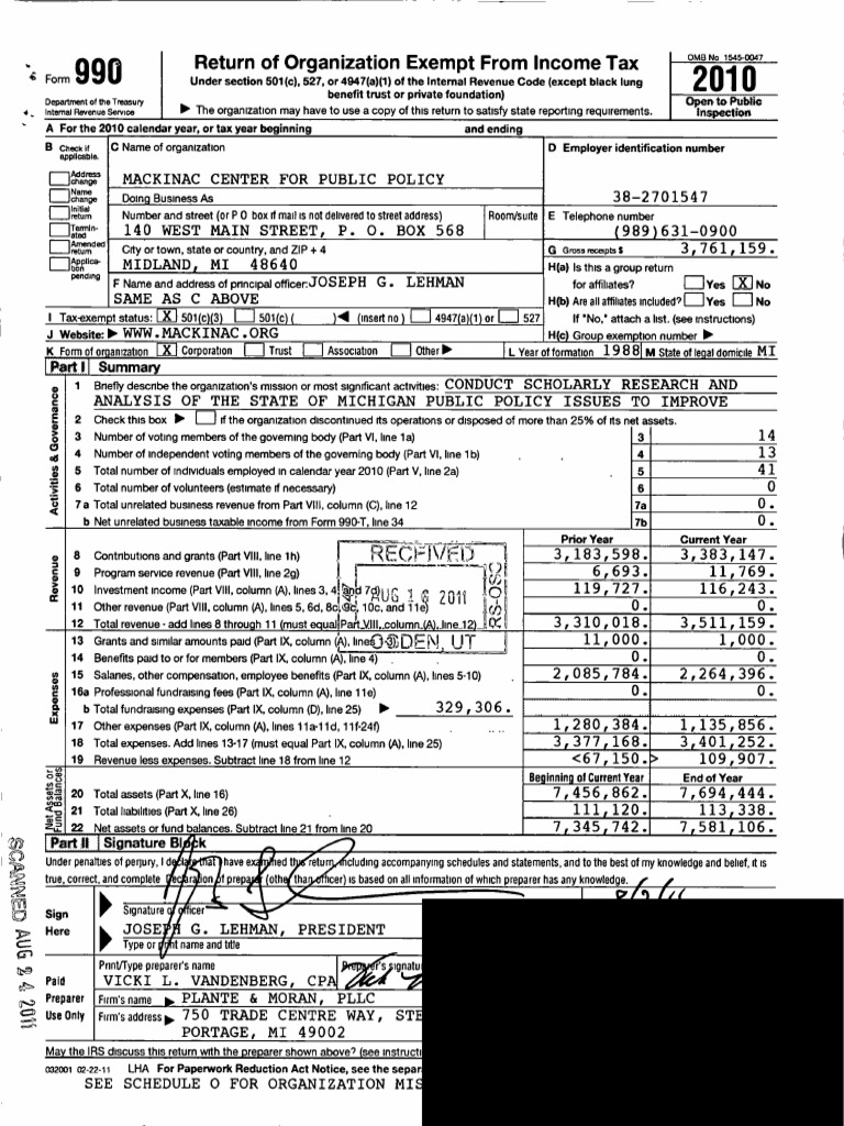 Mackinac Center 990 Form 2010