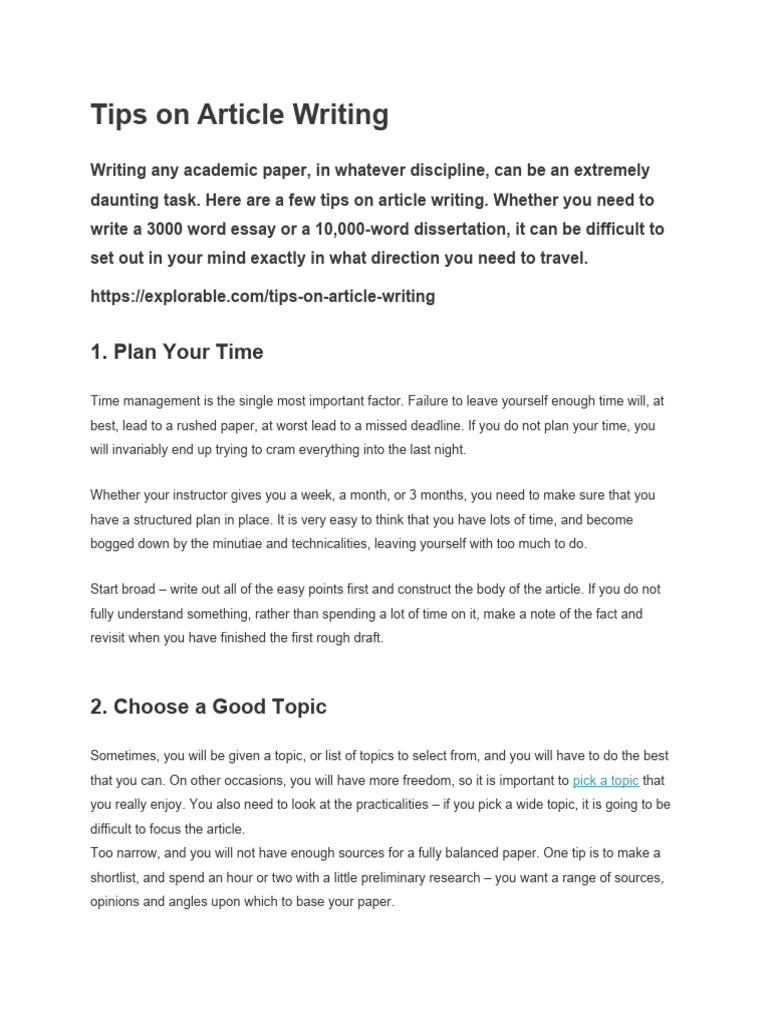 Start broad – write out all of the easy points first and construct the body of the article. If you do not