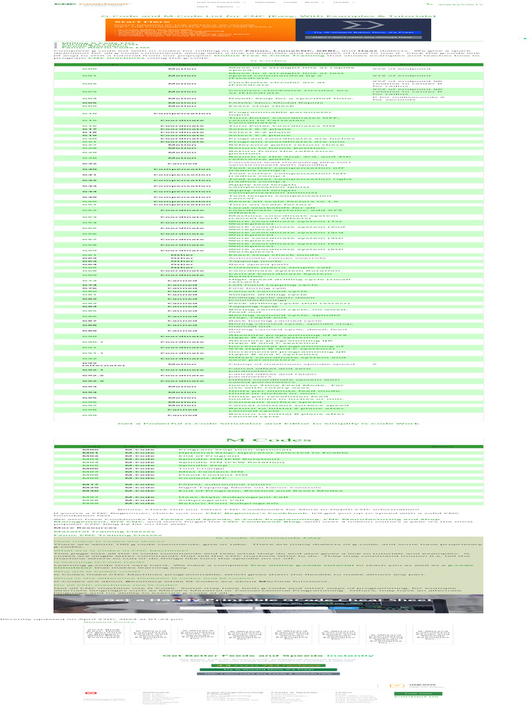CNC Cookbook, Inc. G-Code / M-Code List