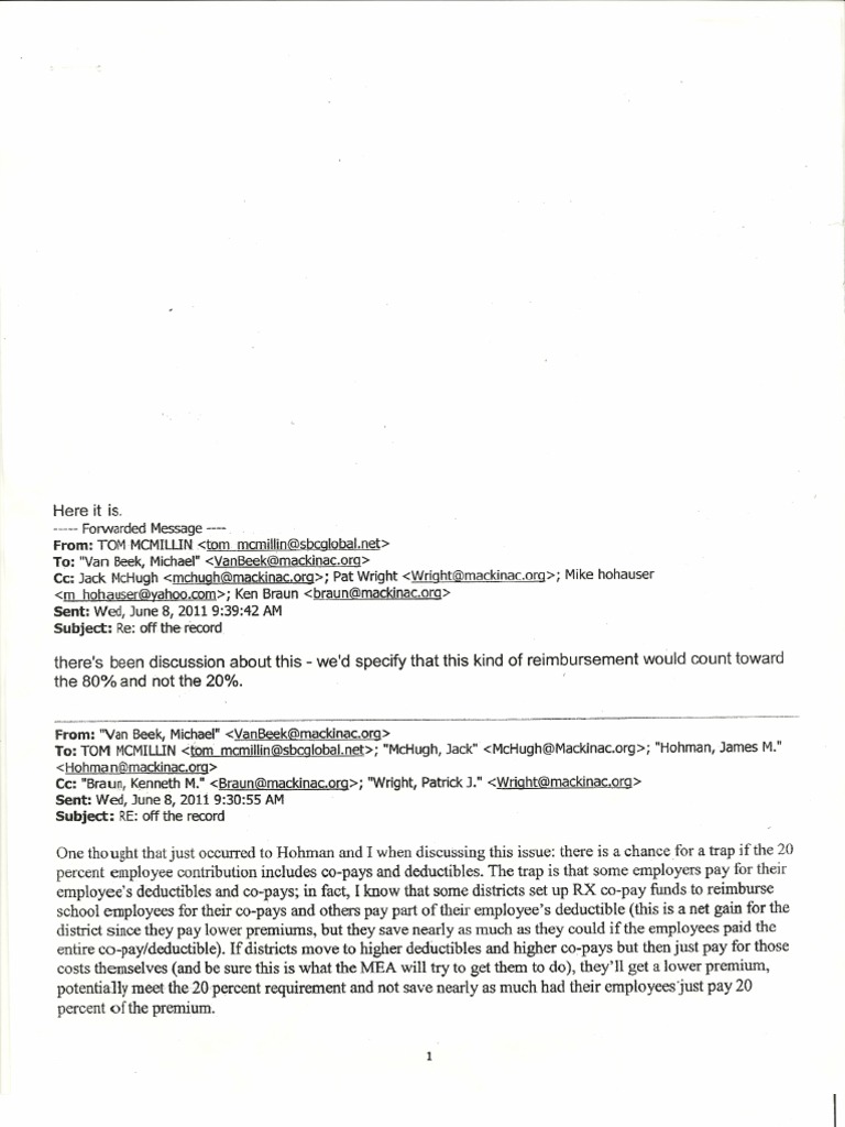 Email correspondence between Rep. Tom McMillin and staff at the Mackinac Center for Public Policy.