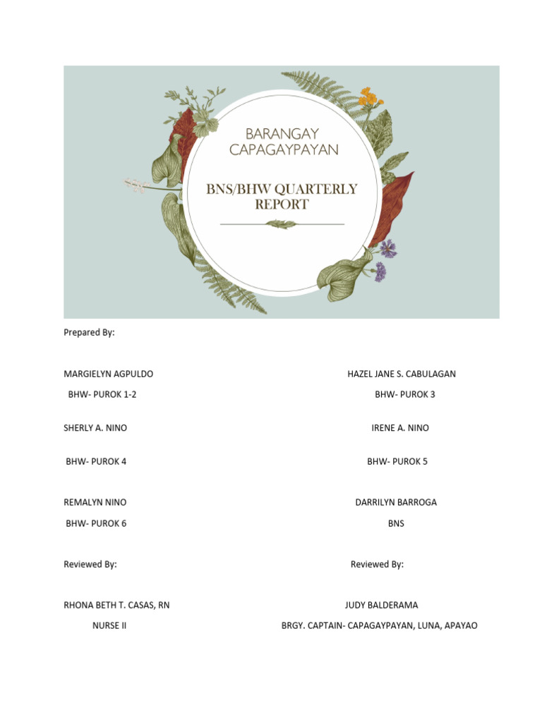 BARANGAY HEALTH NURSE BARANGAY NUTRITION SCHOLAR