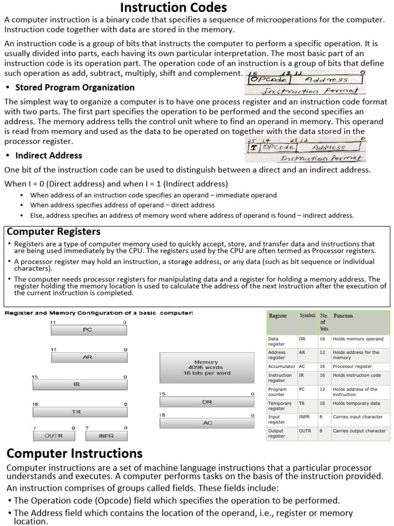 An instruction code is a group of bits that instructs the computer to perform a specific operation. It is