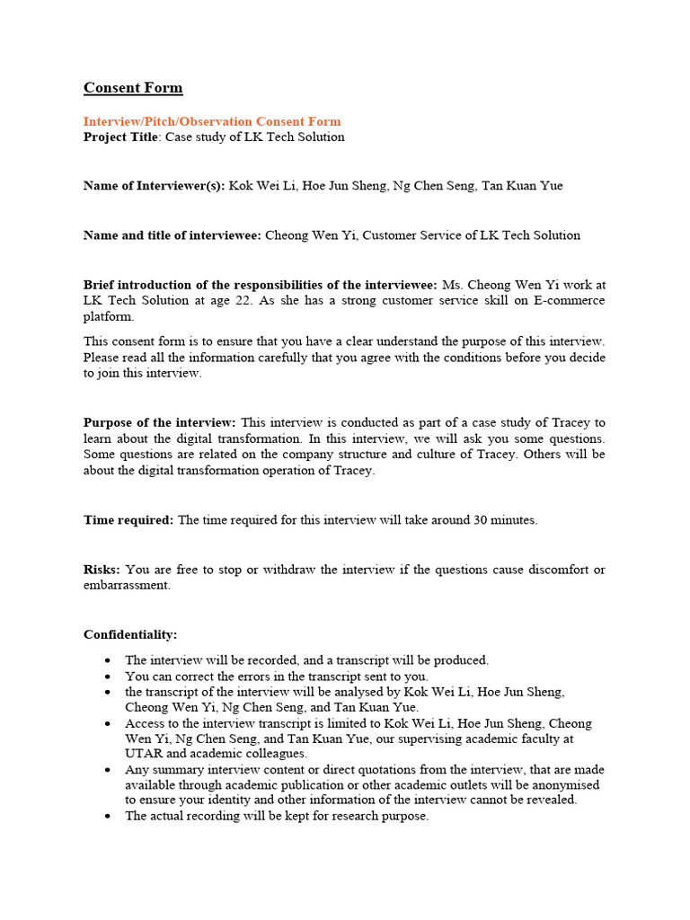 This consent form is to ensure that you have a clear understand the purpose of this interview.