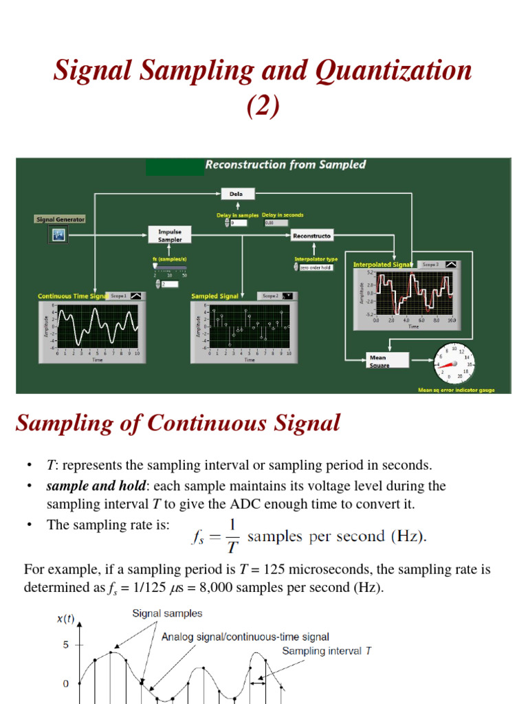 For example, if a sampling period is T = 125 microseconds, the sampling rate is