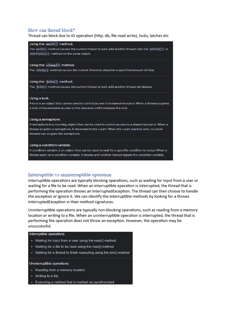 waiting for a file to be read. When an interruptible operation is interrupted, the thread that is