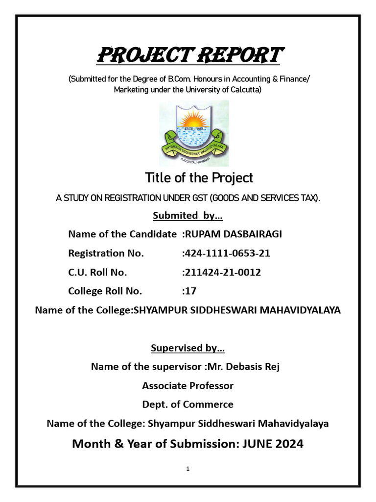 Under GST(Goods and Services Tax) submitted by me for the partial fulfillment of