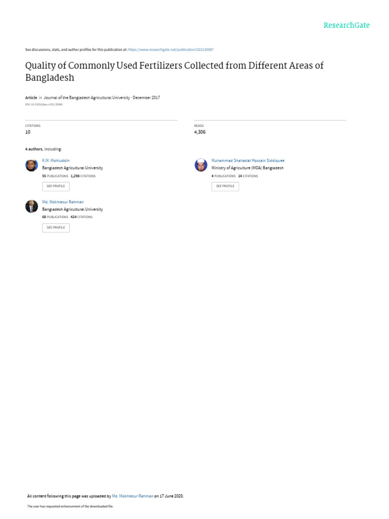 Bangladesh ranged from 18.77 to 25.36% (Table 2). the collected fertilizer samples from Mymensingh,