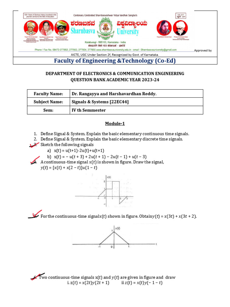1. Define Signal & System. Explain the basic elementary continuous time signals.