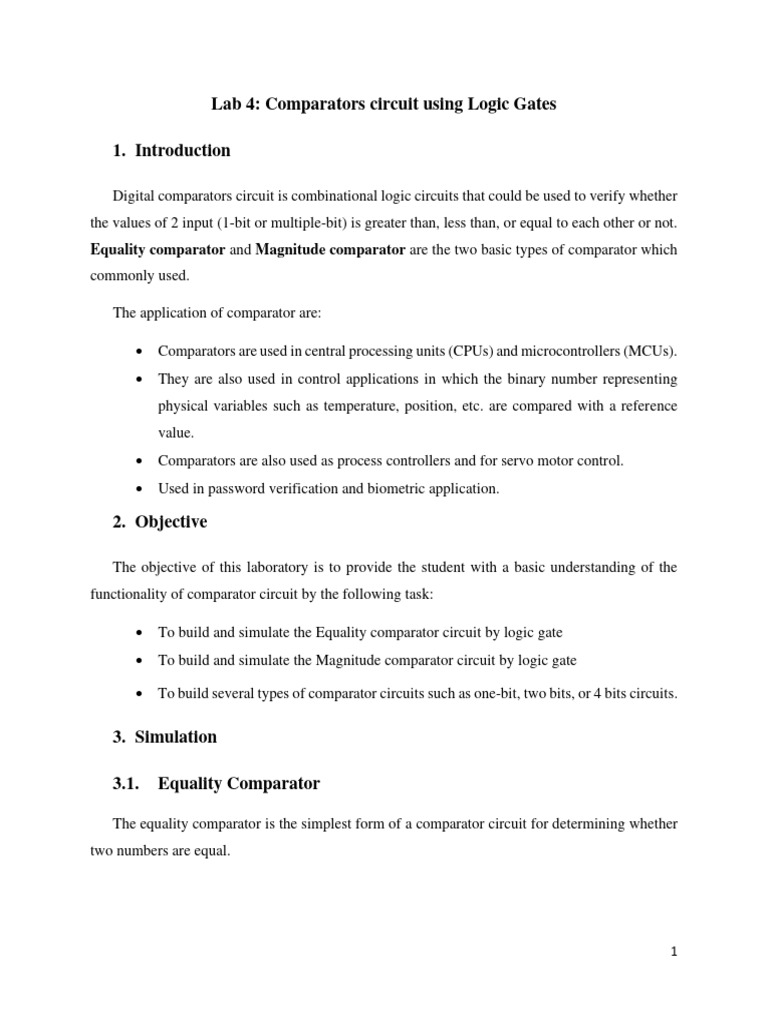 • To build several types of comparator circuits such as one-bit, two bits, or 4 bits circuits.