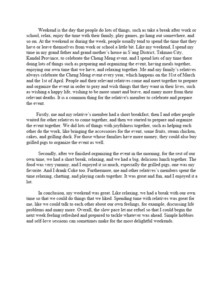 In conclusion, my weekend was great. Like relaxing, we had a break with our own