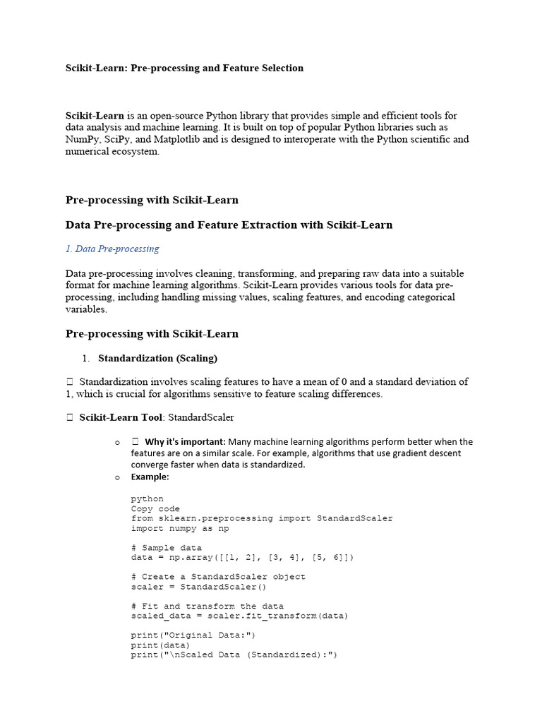 format for machine learning algorithms. Scikit-Learn provides various tools for data pre-