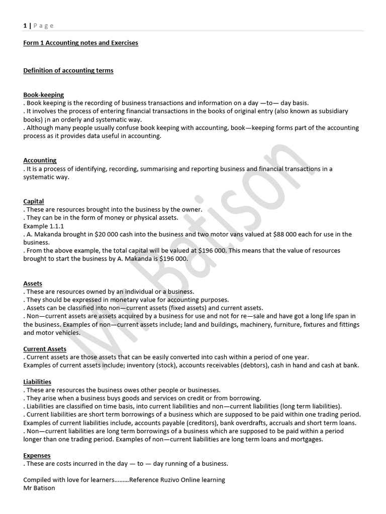 Form 1 Accounting Notes