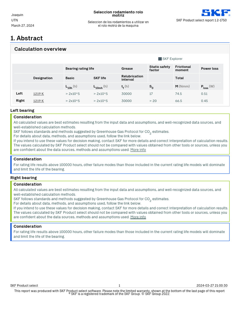 This report was produced with SKF Product select software. Please note the limited warranty, shown at the bottom of the last page of this report