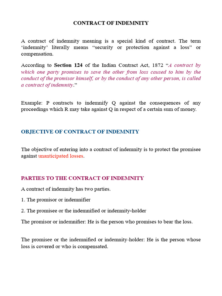 OBJECTIVE OF CONTRACT OF INDEMNITY