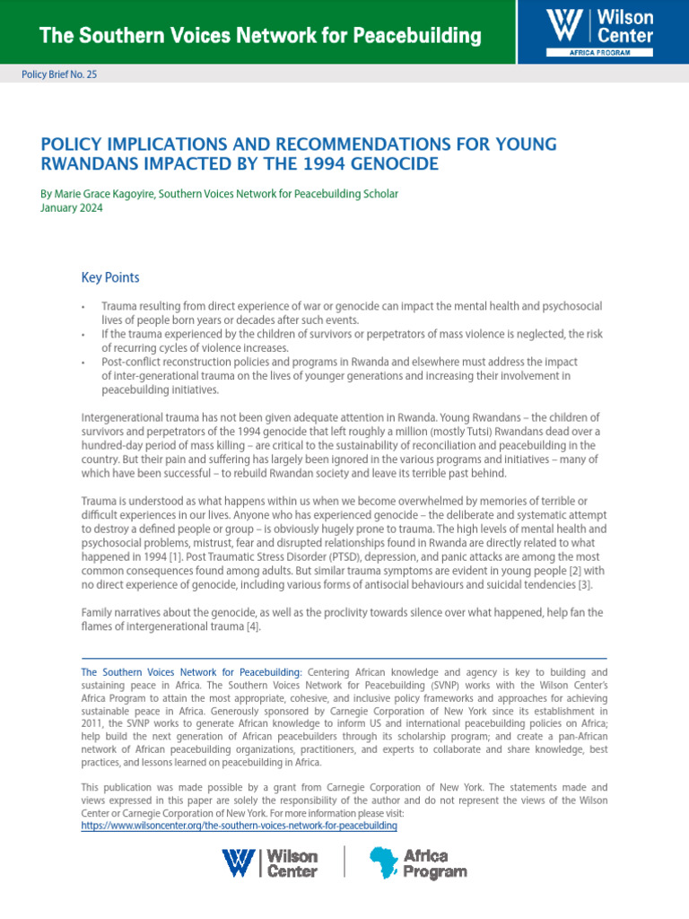Policy Implications and Recommendations For Young Rwandans Impacted by The 1994 Genocide