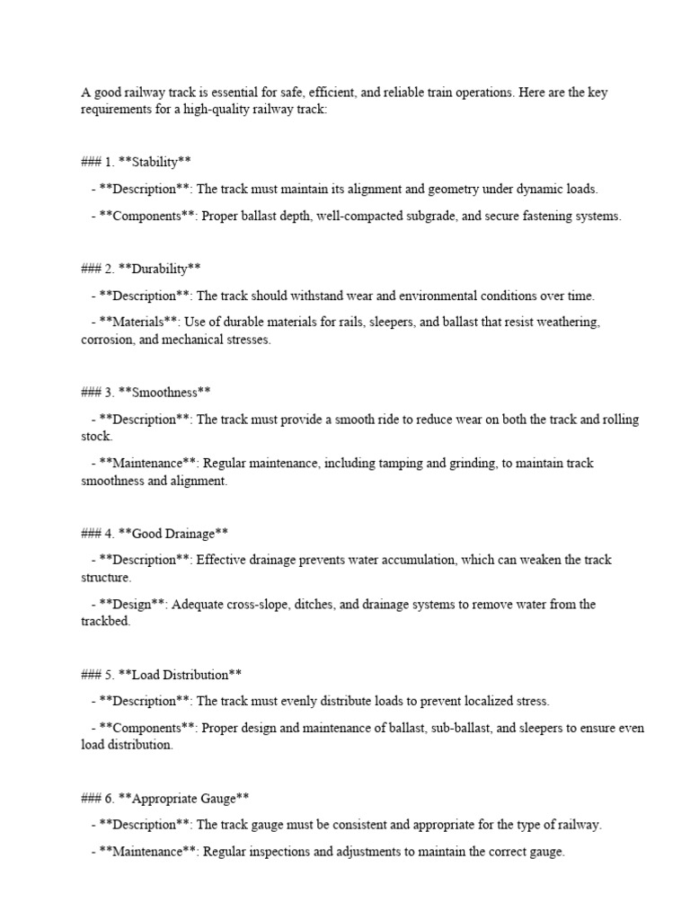A good railway track is essential for safe, efficient, and reliable train operations.