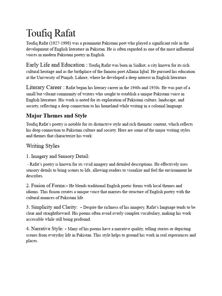 Early Life and Education : Toufiq Rafat was born in Sialkot, a city known for its rich