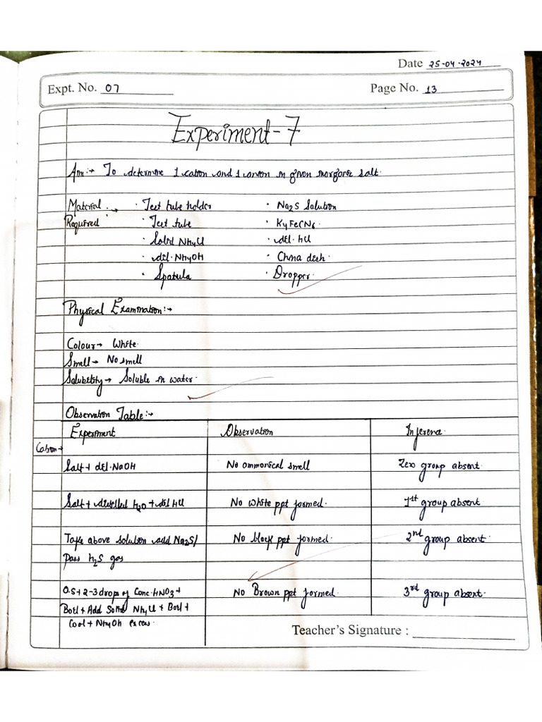 | cot Eas Teacher’s SigdatureExpt. No