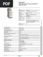 Relay type Minimum current Mechanical life Electrical life mA AC-12 AC-15 DC-13 VA 1 C/O contact, AgCdO, 5 A, 250 V 100 5106 operating cycles 1250, 105 operating cycles Cos = 0.3, 6000 operating cycles L/R = 300 ms, 6000 operating cycles 0.13 seconds 10 % Relay state. OVER or UNDER Mode. Memory function. Type of signal (a or c) Measurement overow Terminal block: IP 20, front panel: IP 40, enclosure: IP 50 Self-extinguishing Pc 2 x 1.5 2 x 2.5 0.6 max Operation: - 20+ 60, storage: - 30+ 70 93 % without condensation 2.5/1 min/1 mA/50 Hz c UL us, CSA RM 84 872 301/RM 84 872 305 E1-M E2-M E3-M 0.22 110 660 2 10 60 4 20 120 50 100 300 RM 84 871 305 E1-M E2-M 220 mA 10100 mA 5 1 40 mA 200 mA 1 5 RM 84 872 310 E1-M E2-M 15150 30300 100 300 200 350 2 2 RM 84 871 310 E1-M E2-M 0.11 A 0.55 A 0.1 0.02 2A 10 A 17 20