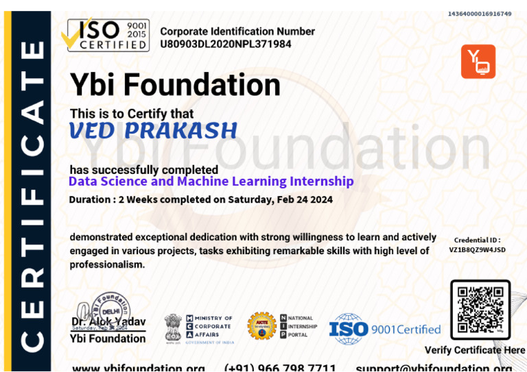 Data Science Internship Credential VZ1B8QZ9W4JSD
