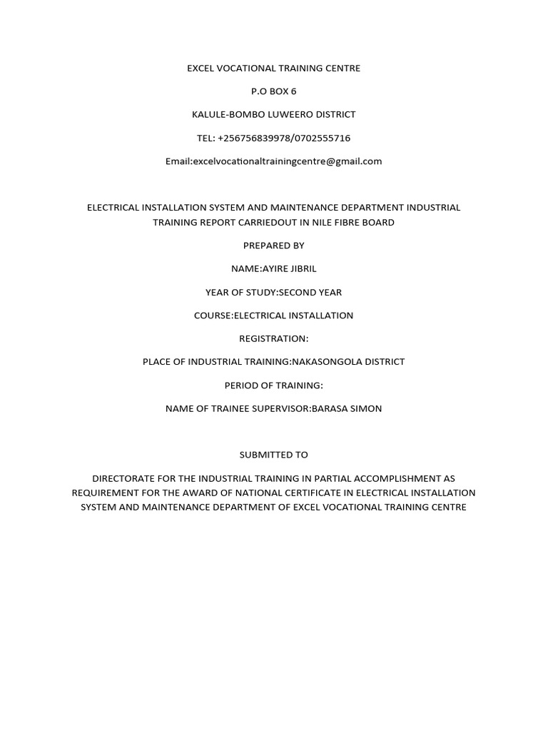 TRAINING REPORT CARRIEDOUT IN NILE FIBRE BOARD