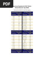 Nominal Major Minor Diameter Tapping Threads Pitch