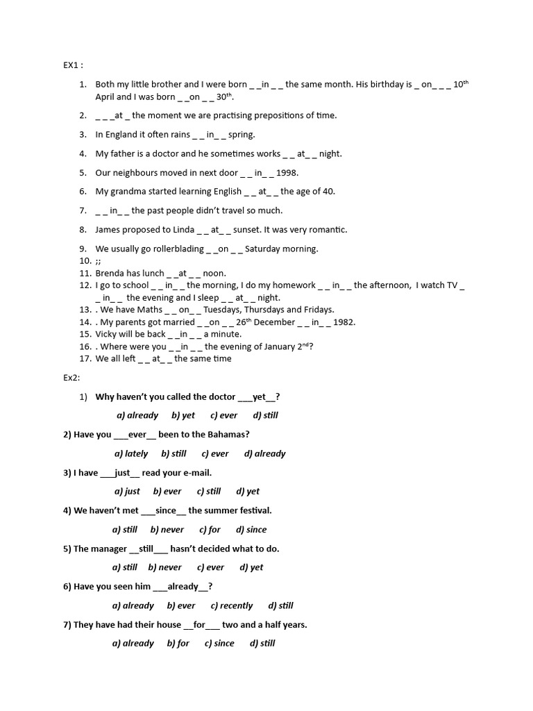 2. _ _ _at _ the moment we are practising prepositions of time.