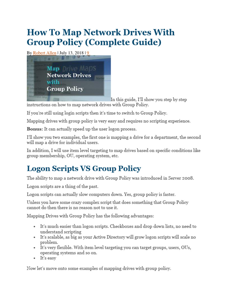 I’ll show you two examples, the first one is mapping a drive for a department, the second