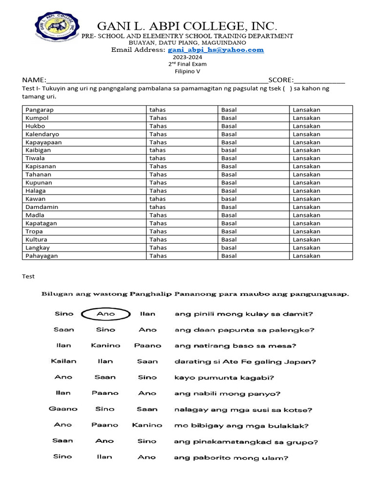Test IV- Gwing panghalip pananong ang mga sumusunod.